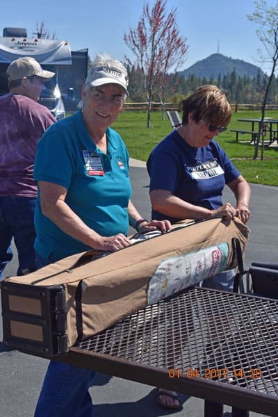 Penny Published 04/13/2017 at 400 × 600 in Penny Smiling volunteers at a FreeWheelers event organizing gear outdoors in a park setting.