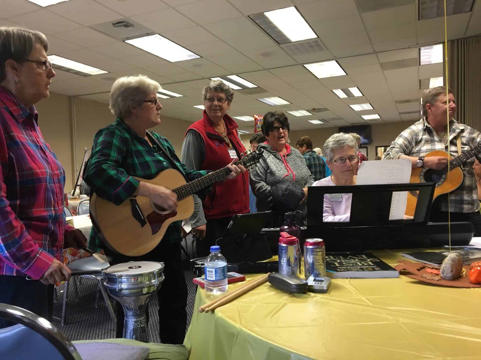 Strummers 2017 Published 11/12/2017 at 2048 × 1536 in Strummers 2017 A group of women and one man performing with guitars and keyboard during a lively social event, showcasing community engagement and musical entertainment.