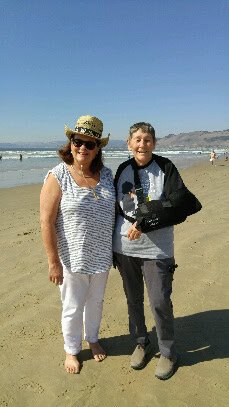 WG PD Pismo Published 10/27/2017 at 229 × 407 in WG PD Pismo A cheerful woman and a young boy pose together on a sunny beach, with the waves and shoreline behind them. They appear happy, dressed casually, capturing a joyful moment of outdoor fun by the sea.